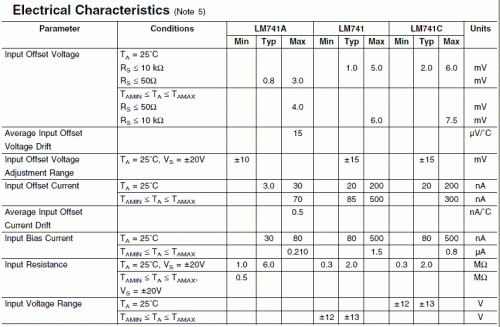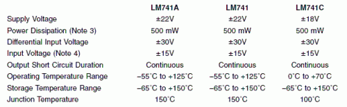 Datele au fost preluate după foaia de catalog a amplificatorului operaţional LM741.